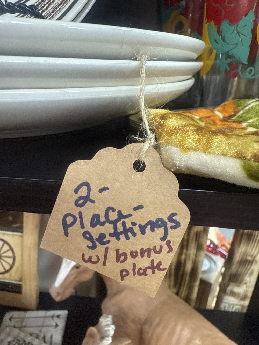 2- place settings plus one bonus dinner plate Each place setting includes 1 dessert plate and 1 dinner plate.