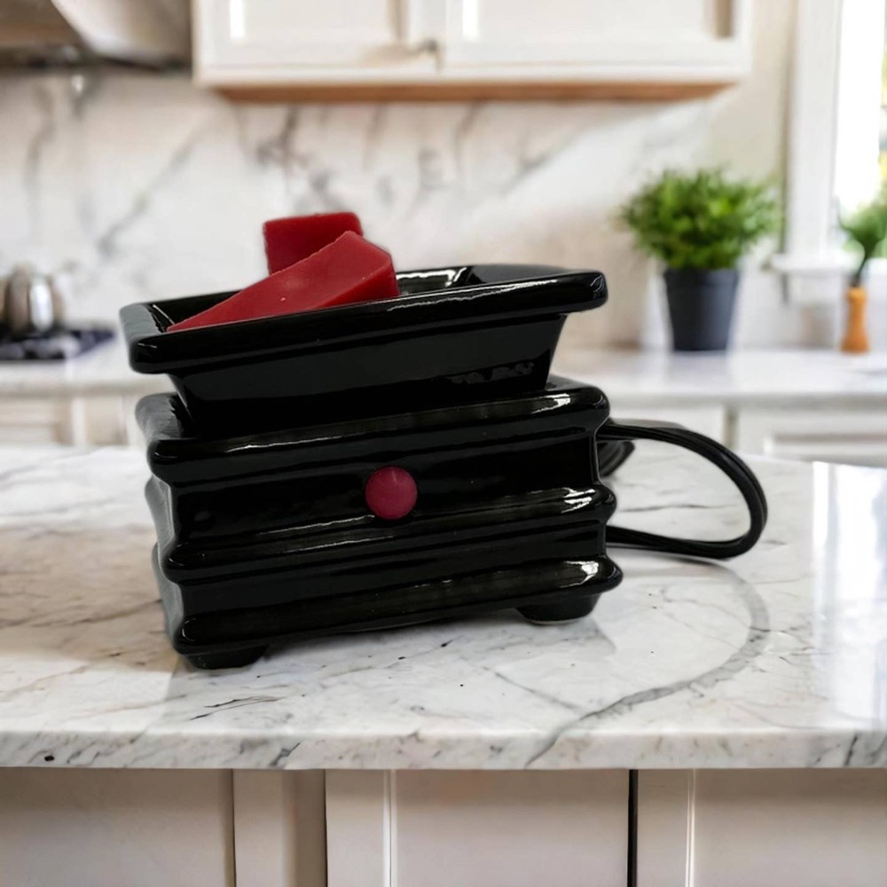 The Candle Daddy Electric Wax Melt and Candle Warmer - Jet Black Square Pagoda Ceramic Large warming plate will fit most Candles for safe, flameless candle use. Large removal dish for Wax Melt Cubes - Easy clean up, removal and use Forget changing bulbs or struggling to get your wax out of ceramic dishes. This warmer never needs a bulb change. It heats the wax using a warming plate! Warmer Size: 3.5" H x 4" W